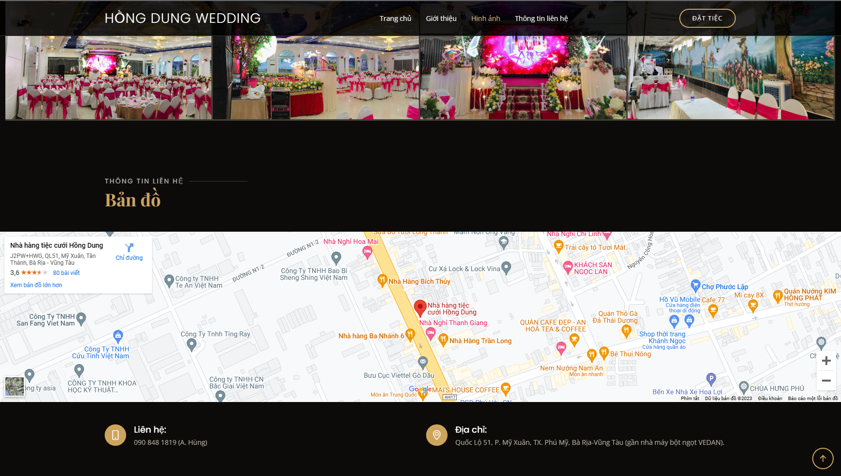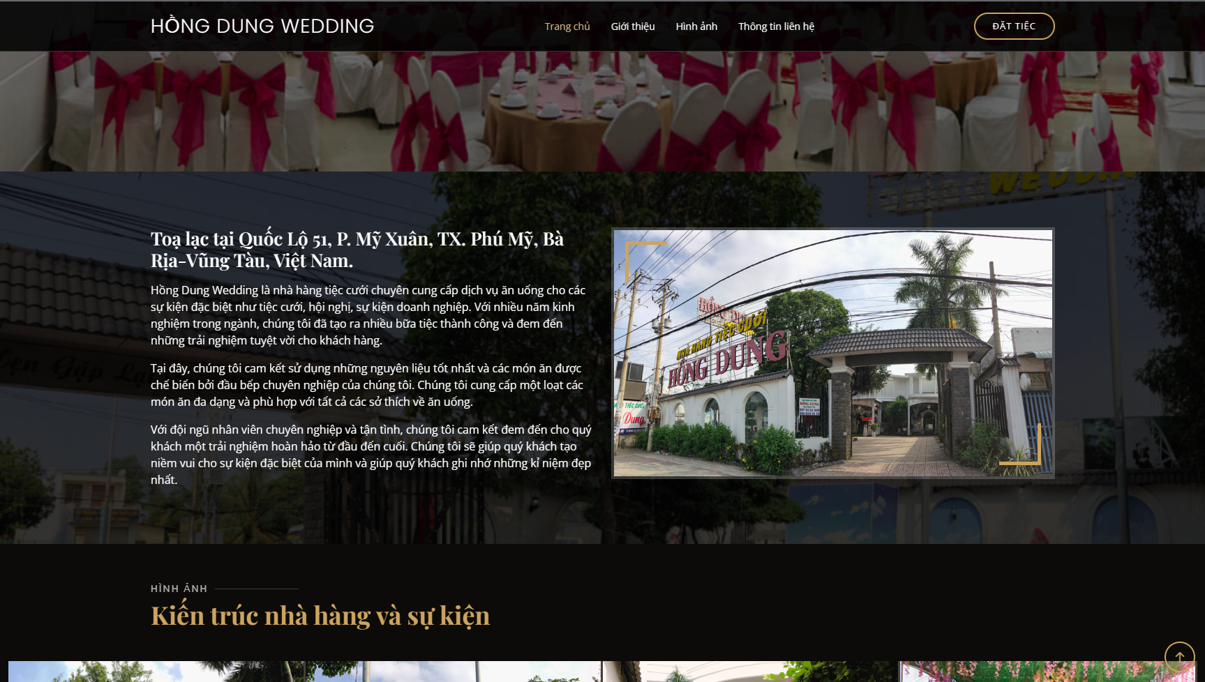 Website introducing Hồng Dung Wedding Banquet Hall used for promotion and advertising campaigns.